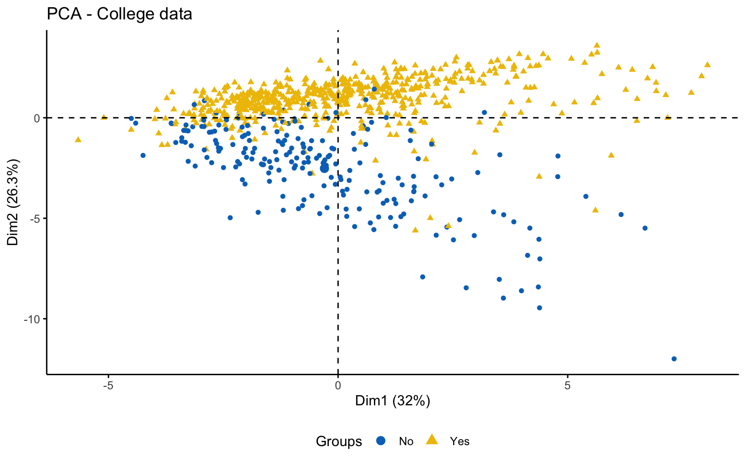 This is possible apply only on the result of K-means++ (\(k=2\)), because it is the unique clustering algorithem that identify the beahiour of the private and public college.