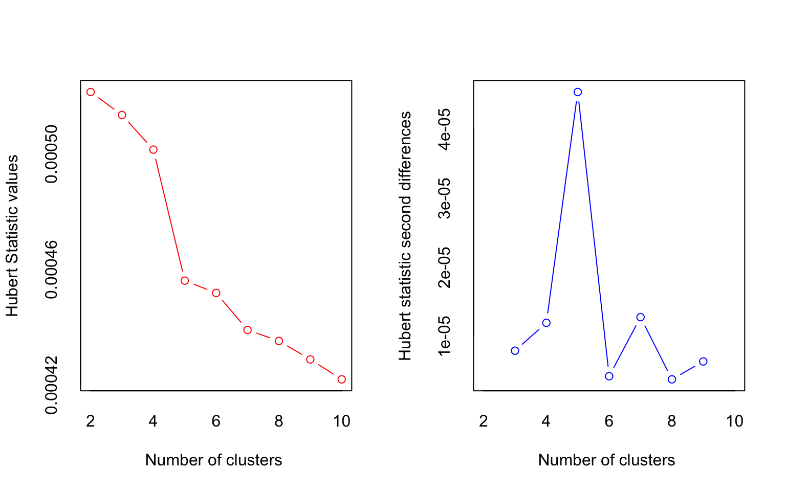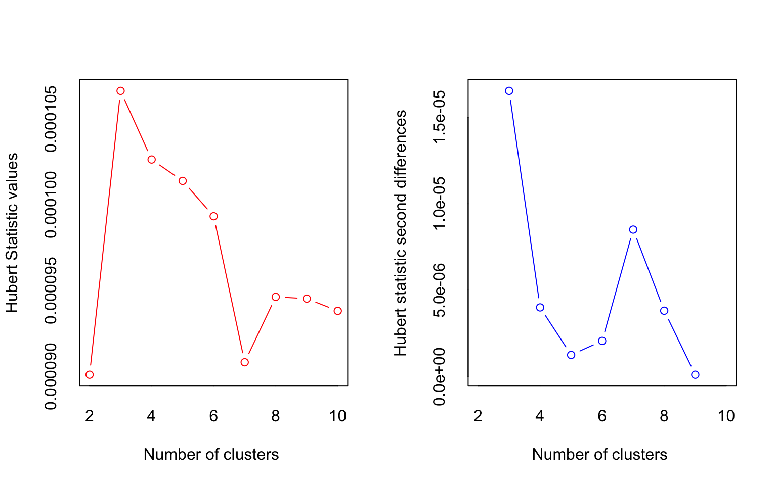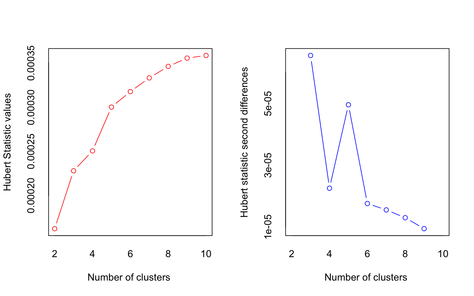 ## In the plot of Hubert index, we seek a significant knee that corresponds to a