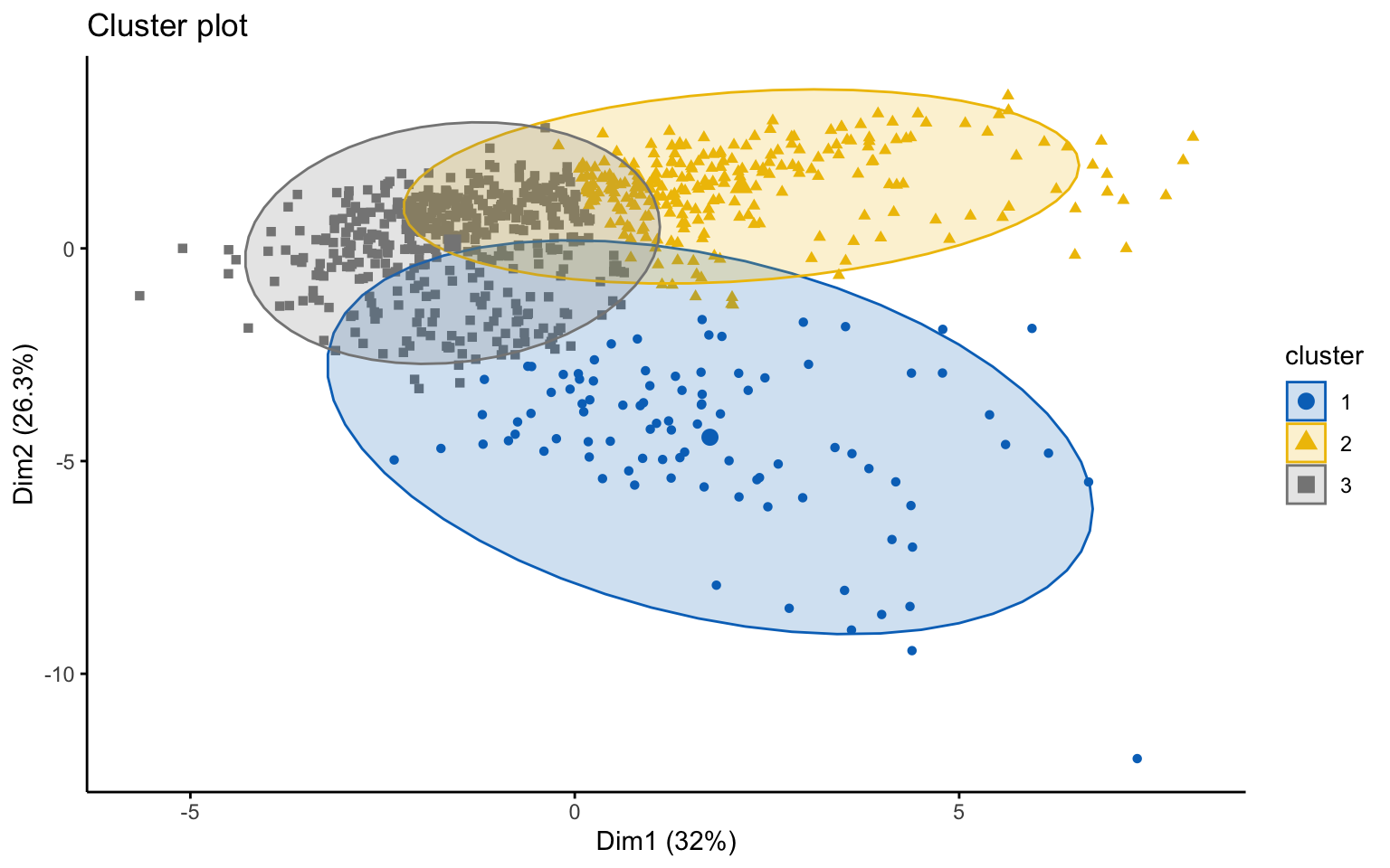 The classic k-means with three clusters, however, uncovered additional patterns: